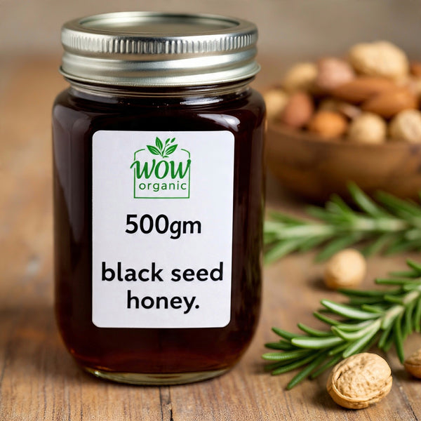100% pure honey with authentic taste and fueled with nutrients - with a blend of blackseeds. Honey with Blackseed contains calcium, iron, zinc, copper, thiamin, niacin, phosphorous, folic acid, B vitamins, proteins, phenol antioxidants, calcium, magnesium; manganese; potassium, phosphorus and zinc.