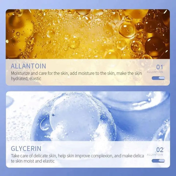 Allantoin, Hydroxyethylcellulose, Diazolidinyl Urea, Vaccinium Angustifolium (blueberry) Fruit Extract, Vaccinium Myrtillus Fruit Extract, Centella Asiatica Extract, Portulaca Oleracea Extract, Carbomer, Triethanolamine, Disodium Edta, Phenoxyethanol, Peg-40 Hydrogenated Castor Oil, Fragrance, lodopropynyl Butylcarbamate, Peg-10, Polysorbate 60, Disodium Phosphate, Niacinamide, Hyaluronic Acid, Hydrolyzed Collagen, Hydroxypropyl Tetrahydropyrantriol, Sodium Phosphate, 1,2-hexanediol, Oligopeptide-1, Ethylhexylglycerin.