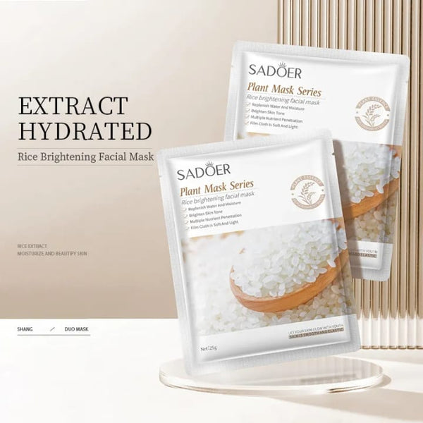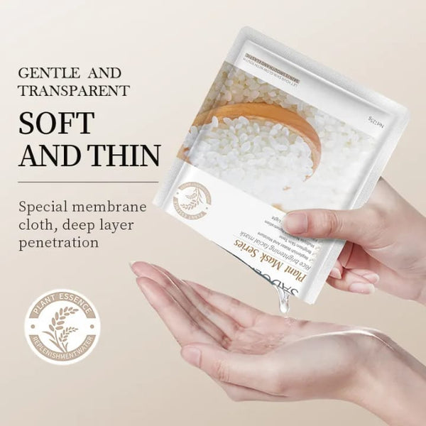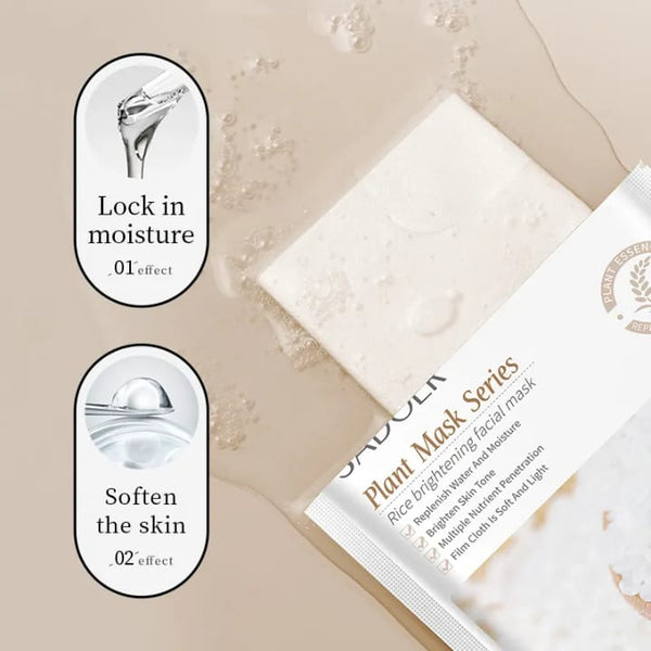 MASK IS LOADED WITH ESSENCE, FITS THE FACE, AND CONTAINS RICE ESSENCE, WHICH MOISTURIZES DRY AND DULL SKIN, BRIGHTENS THE COMPLEXION, AND LEAVES THE SKIN GLOWING, SOFT AND SMOOTH.